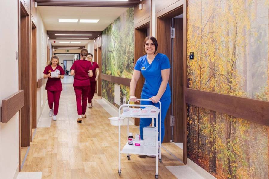 Wykwalifikowany personel medyczny dba o kontynuację leczenia i możliwość powrotu do zdrowia Pacjentów przebywających w ośrodku. Istnieje perspektywa skorzystania ze specjalistycznych konsultacji lekarskich wykwalifikowanych lekarzy z zakresu wąskich specjalizacji oraz specjalistycznych terapii psychologicznych, neurologopedycznych, a także dostępnej diagnostyki dla Pacjenta. Opieka medyczna jest kompleksowa z lekarzem koordynującym proces leczenia oraz z pozostałym zespołem interdyscyplinarnym, który dba o Pacjenta w sposób szczególny. Pielęgniarki i ratownicy medyczni dbają o poprawność wykonywanych świadczeń dla Pacjentów, a za zakres pielęgnacji całościowej odpowiedzialny jest opiekun medyczny. Do interdyscyplinarnego zespołu zalicza się fizjoterapeuta, który jest specjalistą w zakresie wykonywanej rehabilitacji medycznej a także psychologów i neurologopedów.