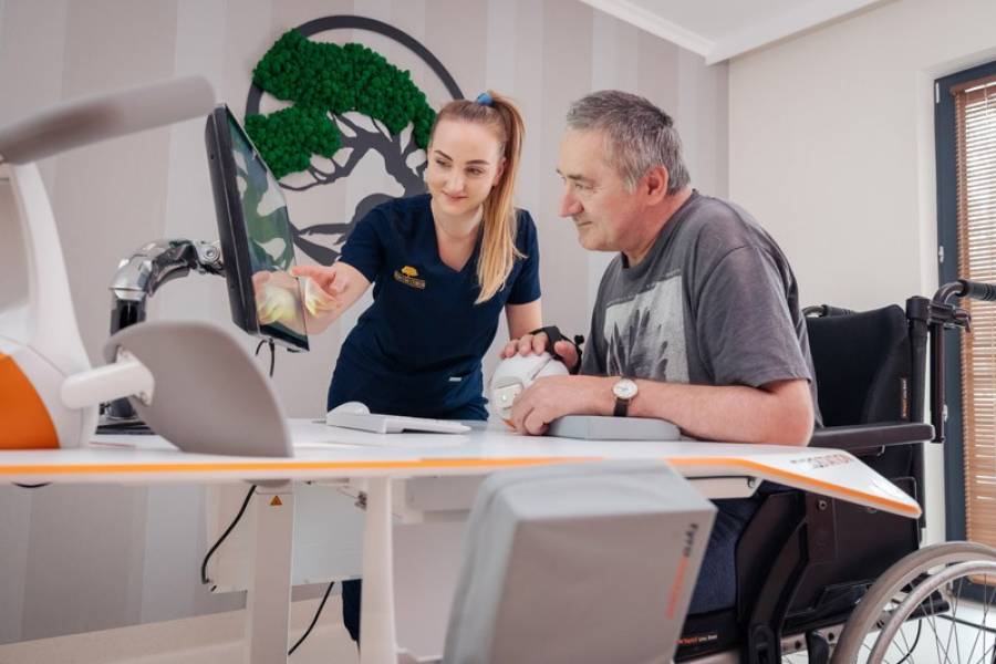 Dokłada się wszelkich starań, aby opieka medyczna i rehabilitacja Pacjentów odbywała się w najwyższym standardzie już po wypisie ze szpitala lub podczas chorób przewlekłych, które dotychczas występowały w środowisku domowym. Innowacyjna technologia użytkowana w codziennej pracy z Pacjentem daje możliwości wspierające proces usprawniania i powrotu do zdrowia.
