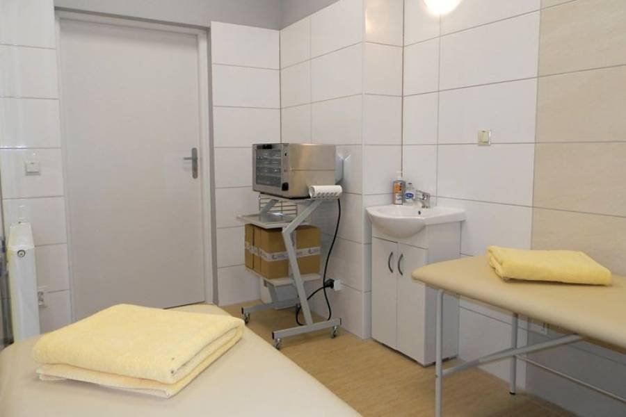 - pomieszczenie do fizykoterapii, gdzie prowadzona są: laseroterapia, elektrodiagnostyka, galwanizacja, galwanoborowina, jonoforeza, diadynamik, prądy Traberta, prąd Faradyczy / Neofaradyczny, stymulacja Rosyjska (prądy Kotza), TENS, prądy interferencyjne, mikroprądy (stymulacja podprogowa), stymulacja spastyczna metodą Hufschmidta, tonoliza, stymulacja spastyczna metodą Jantscha, prąd wysokonapięciowy HV (High Volt Therapy), fale średniej częstotliwości, fale H, prąd VMS, EPIR, terapia ultradźwiękowa (hands free sono therapy), lampa Sollux, lampa Bioptron MedAll, magnetronik, diatermia, inhalacje solankowe, okłady borowinowe miejscowe, drenaż limfatyczny (Terapia Lympha Stim), Sauna Infra Red