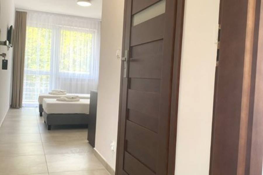 Proponujemy Państwu wygodne pokoje typu studio (2 + 2) z łazienkami i balkonami w dwóch 2-piętrowych obiektach noclegowych oraz 2 osobowe apartamenty. Każdy pokój wyposażony jest w telewizor, radio, leżaki, dużą szafę na ubrania, czajnik, sztućce, suszarkę na odzież. Dla Gości dostępny jest zamykany parking na 50 samochodów i internet Wi-Fi. Od maja do października do Państwa dyspozycji oddajemy rodzinne domki letniskowe. 3/4-osobowe domki posiadają po dwa pokoje, aneks kuchenny, łazienkę oraz taras. Domki wyposażone są w telewizory, radia, lodówki. W dużym pokoju znajduje się rozkładana 2-osobowa wersalka, w małym pokoju 2 niezależne łóżka.