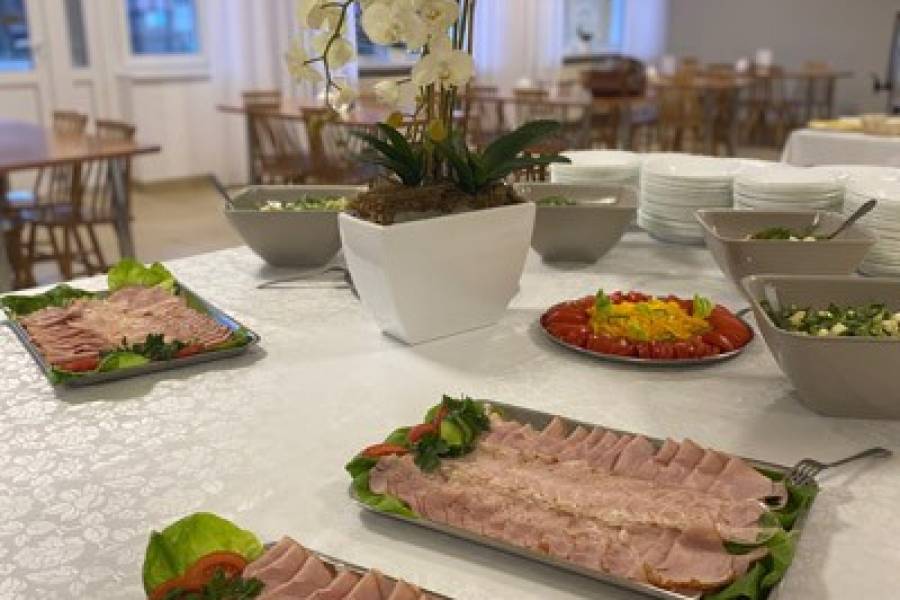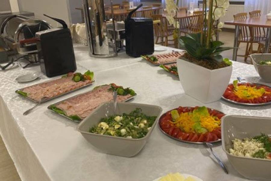 W naszej przestronnej jadłodajni znajdującej się na terenie ośrodka serwujemy smaczne i urozmaicone dania kuchni polskiej. Wyżywienie obejmuje trzy posiłki dziennie, czyli śniadanie, obiad i kolację. Od wielu lat otrzymujemy od Państwa zapewnienie o wspaniałej jakości naszych potraw, co nieustannie motywuje nas do ciągłego udoskonalania naszych umiejętności. Nasza kuchnia przewiduje wyżywienie dla osób znajdujących się na diecie cukrzycowej i lekkostrawnej.