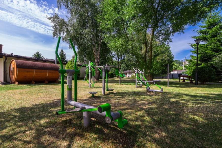 Do dyspozycji Gości na terenie Ośrodka: basen odkryty z podgrzewaną wodą, Centrum Odnowy Biologicznej i Rehabilitacji. Dodatkowo wypożyczalnia sprzętu sportowego i wodnego. Parking samochodowy za dodatkową opłatą 10 zł/doba.