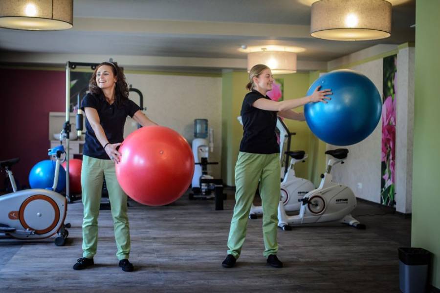- zajęcia ruchowe każdego dnia na sali gimnastycznej lub w basenie, mające na celu przywrócenie bezbolesnych ruchów, wzmocnienie wydolności oraz poprawienie sprawności fizycznej. Optymalny czas pobytu wynosi minimum 7 – 14 dni.