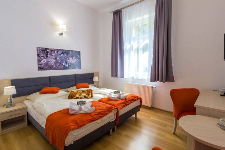 Oferujemy zakwaterowanie w nowoczesnych i wygodnych pokojach z łazienkami. Na terenie ośrodka mieści się restauracja, a także nowoczesny kompleks SPA z basenem i szerokim pakietem usług. Komfortowa infrastruktura turystyczna z atrakcjami dla osób z każdej grupy wiekowej. Na szczególną uwagę zasługuje nasze centrum SPA, oferujące atrakcje wodne i baseny, a także usługi rehabilitacyjne i pielęgnacyjne. Zapewniamy także dostęp do świeżych, starannie skomponowanych śniadań i obiadokolacji oraz innych posiłków, których można spróbować w restauracji.