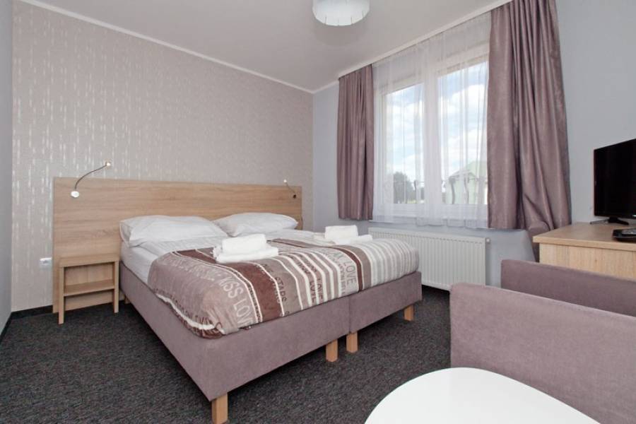 - zakwaterowanie w pokojach 2-3 osobowych z pełnym węzłem sanitarnym, TV, balkonami, Wi-Fi, chłodziarka, zestaw naczyń, czajnik elektryczny.
