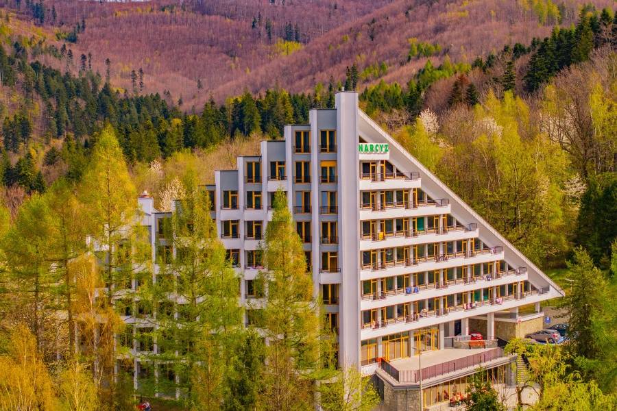 - Nasza baza noclegowa to aż 1600 miejsc, w 5 budynkach – Sanatorium Kos, Narcyz, Rosomak, Wilga oraz nasz flagowy budynek — Sanatorium Równica