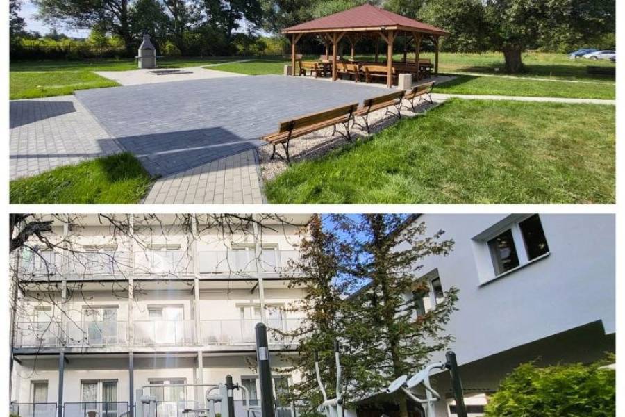 Zaciszne położenie obiektu, rozległy i ogrodzony teren gwarantują spokojny i odprężający pobyt.