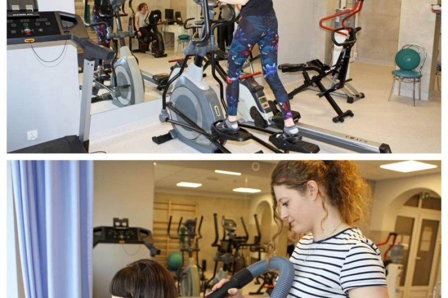 - schorzenia reumatyczne, zwyrodnienia kręgosłupa, niedowłady kończyn, rehabilitacja po wypadkach i operacjach na narządach ruchu (masaż wibracyjny, klasyczny, podwodny, masaż wirowy rąk i nóg, kąpiele solankowe i pasta borowinowa, krioterapia, kinezyterapia i fizykoterapia)