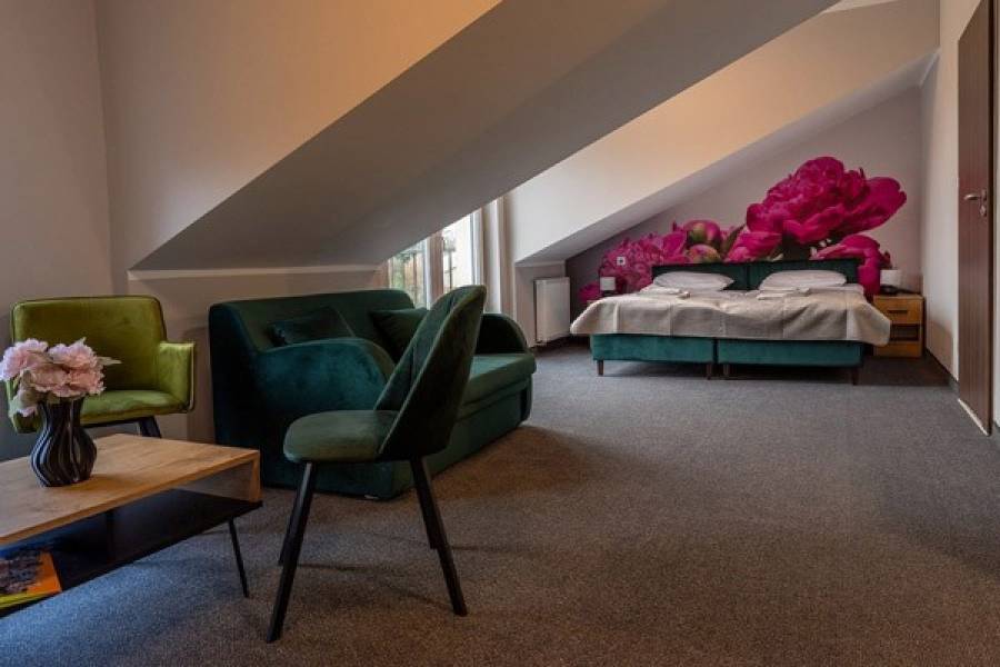 Baza hotelowa dysponuje miejscami w pokojach jednoosobowych, dwuosobowych standard, dwuosobowych premium, trzyosobowych oraz apartamentach i kwiecistych pokojach premium plus. Wszystkie pokoje są klimatyzowane, posiadają łazienki z natryskiem, pojedyncze łóżka z opcją zsunięcia, lodówkę, czajnik bezprzewodowy, telewizor, szlafrok, bezpłatny dostęp do wi-fi. Apartamenty posiadają: wanny, suszarki, kosmetyki w dozownikach, wodę powitalną oraz tarasy.