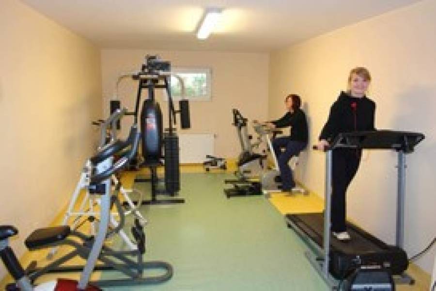 - sala ćwiczeń (atlas, ławeczka, rowerki treningowe, stepery, bieżnia, drabinki, materace i inne)