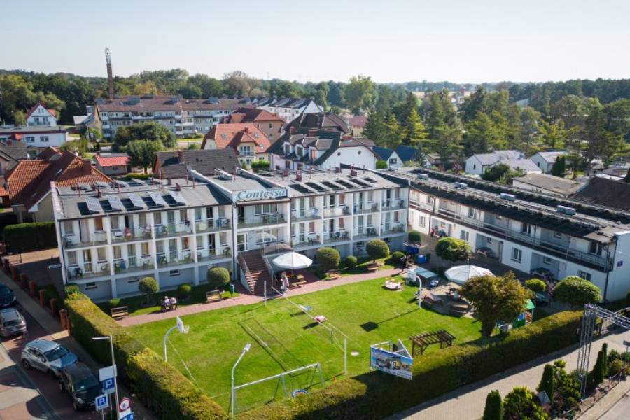 CONTESSA - kompleks rehabilitacyjno-wypoczynkowy, usytuowany jest w samym centrum Dziwnówka, a jednocześnie w bliskiej odległości od plaży – ok. 300 m od kompleksu obiektów.