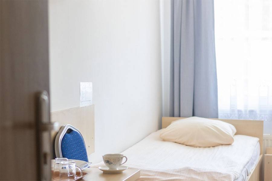 Do dyspozycji gości oddajemy pokoje 1 i 2 osobowe, rozlokowane w trzech skrzydłach. Pokoje są z pełnym węzłem sanitarnym, wyposażone w odbiorniki TV, czajniki bezprzewodowe, naczynia i ręcznik dla każdego pacjenta.