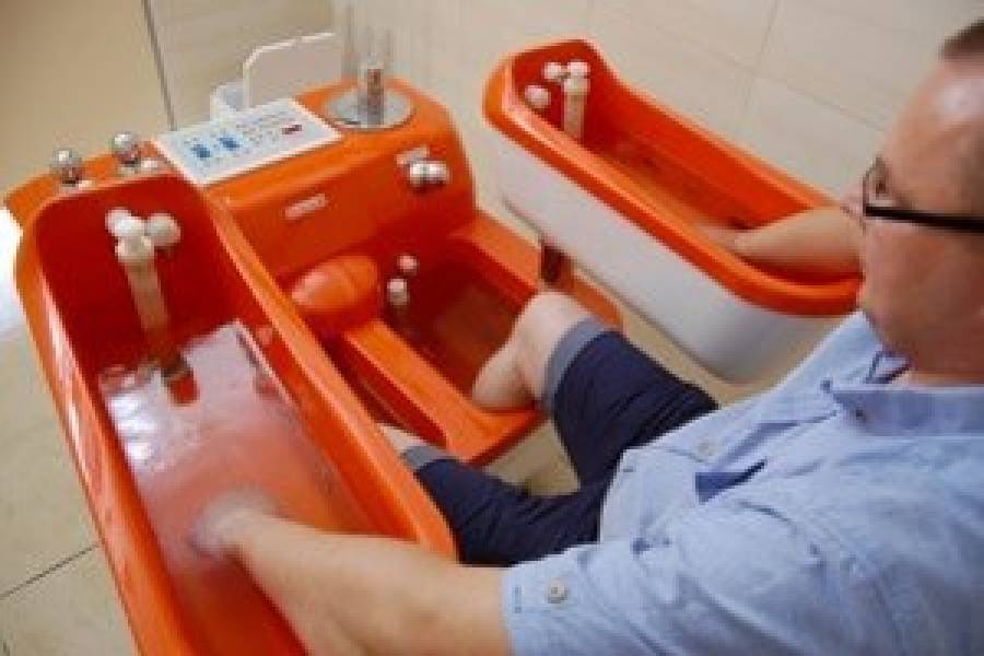 Baza Zabiegowa: basen rehabilitacyjny, gabinety fizykoterapii, hydroterapii i masażu, okłady borowinowe, inhalacje, krioterapia, elektroterapia, magnetoterapia, magneto stymulacja, ultradźwięki, światło terapia, lasery, wanny do masażu