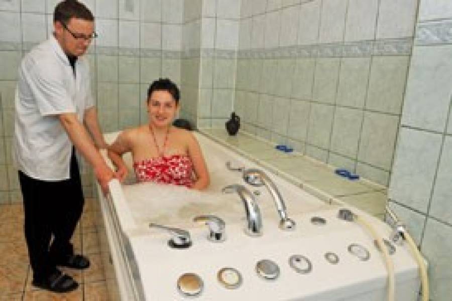 - rehabilitacja: stół do masażu, aquawibron, galwanizacja, lampa solux i solaris, UGUL, fotel do masażu kręgosłupa, okłady borowinowe, inhalatory, hydromasaż, kąpiele perełkowe i ozonowe, krioterapia miejscowa, magnetronik, basen rehabilitacyjny.