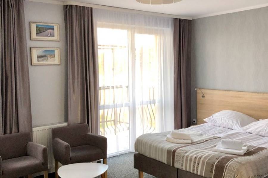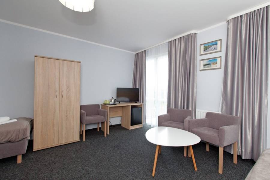 - zakwaterowanie w pokojach 2-3 osobowych z pełnym węzłem sanitarnym, TV, balkonami, Wi-Fi, chłodziarka, zestaw naczyń, czajnik elektryczny.