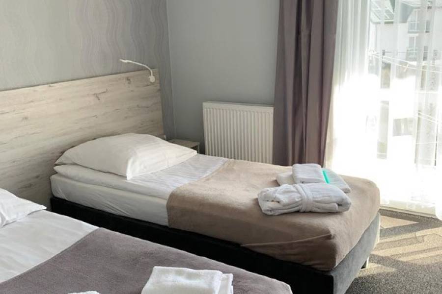 - wypożyczenie szlafroka 30 zł/turnus + 100 zł kaucja (w pokojach w budynku z basenem na wyposażeniu)