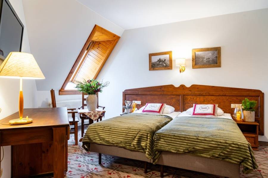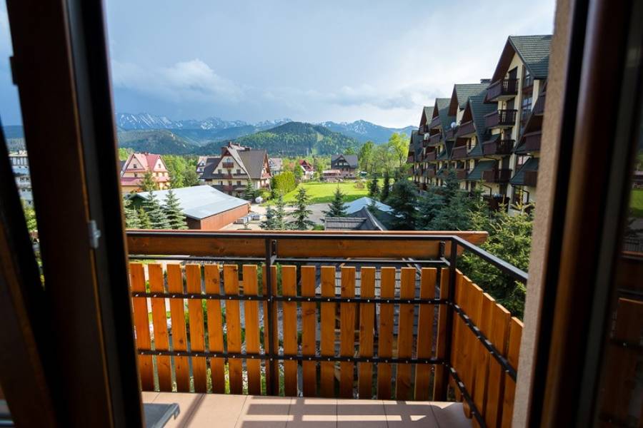 - w niektórych pokojach także balkon z widokiem na Tatry.